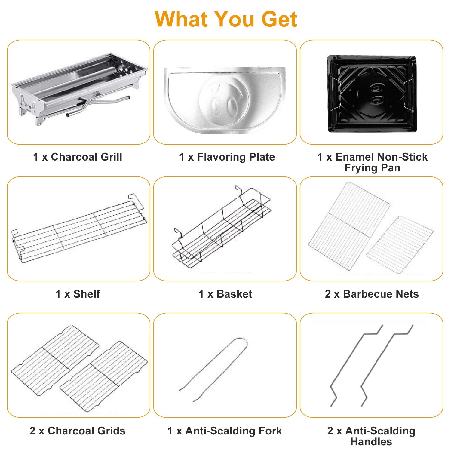 ** Stainless Steel Charcoal Grill*:Both the grill and the barbeque nets are made of premium stainless steel. They are sturdy; load-bearing and easy to clean after use; which makes your cooking more hygienic.