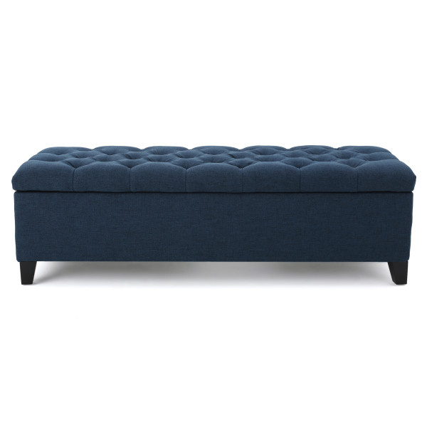 Button tufted diamond stitch: The button-tufted stitching in the lid offers an extra touch of sophistication that enhances its contemporary design. The diamond stitch pattern adds a bit of texture without sacrificing any comfort.