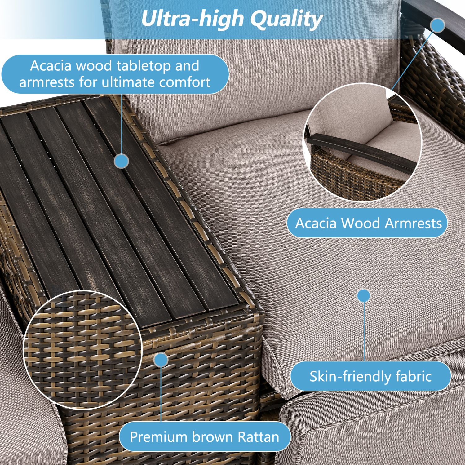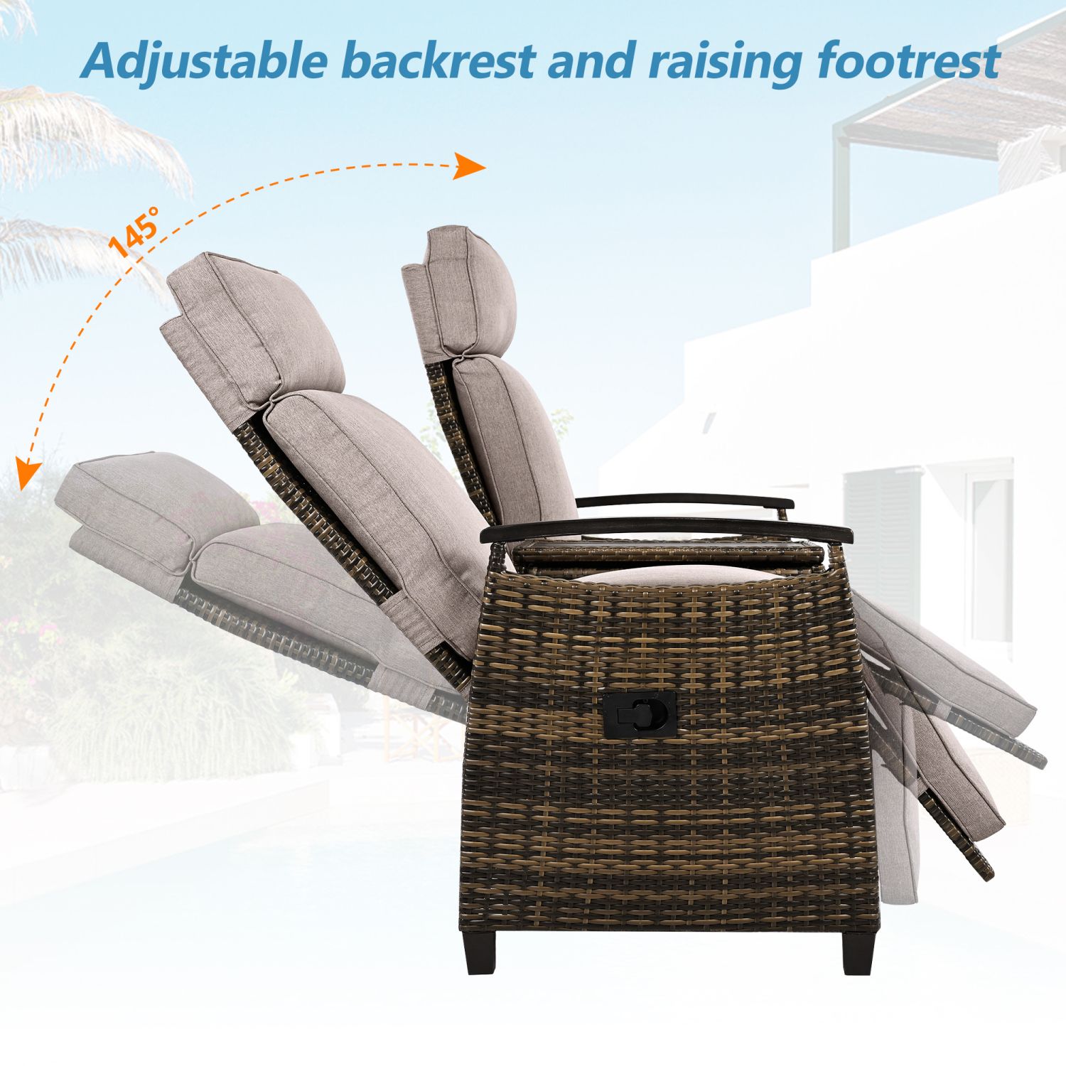 Adjustable Reclining Angle: The backrest and footrest of this lounge chair can be controlled independently by two buttons on the outside of the armrest, and can be freely adjusted up to 145 degrees to meet your relaxation needs in any outdoor space.