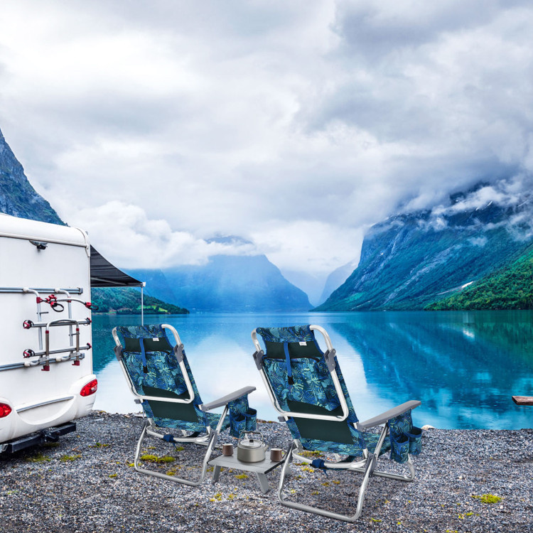3.Robust and Stylish Structure: The beach folding chair is made of high-quality aluminum and has an excellent load-bearing capacity of 300 lbs. In addition, aluminum is lightweight and easy to carry. Its latest fashionable leaf pattern fabric is also very suitable for use on the beach.