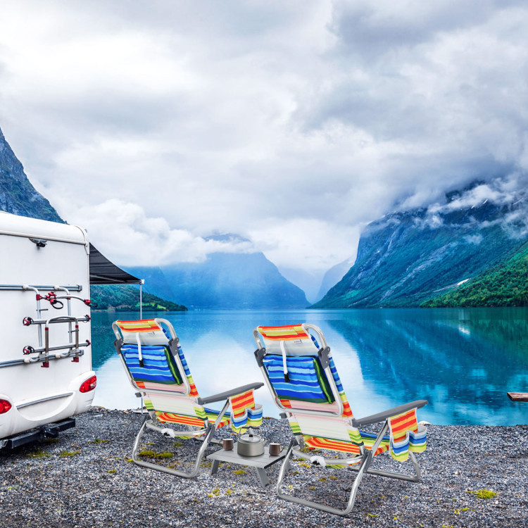 Home > 2 Packs 5-Position Outdoor Folding Backpack Beach Table Chair Reclining Chair Set