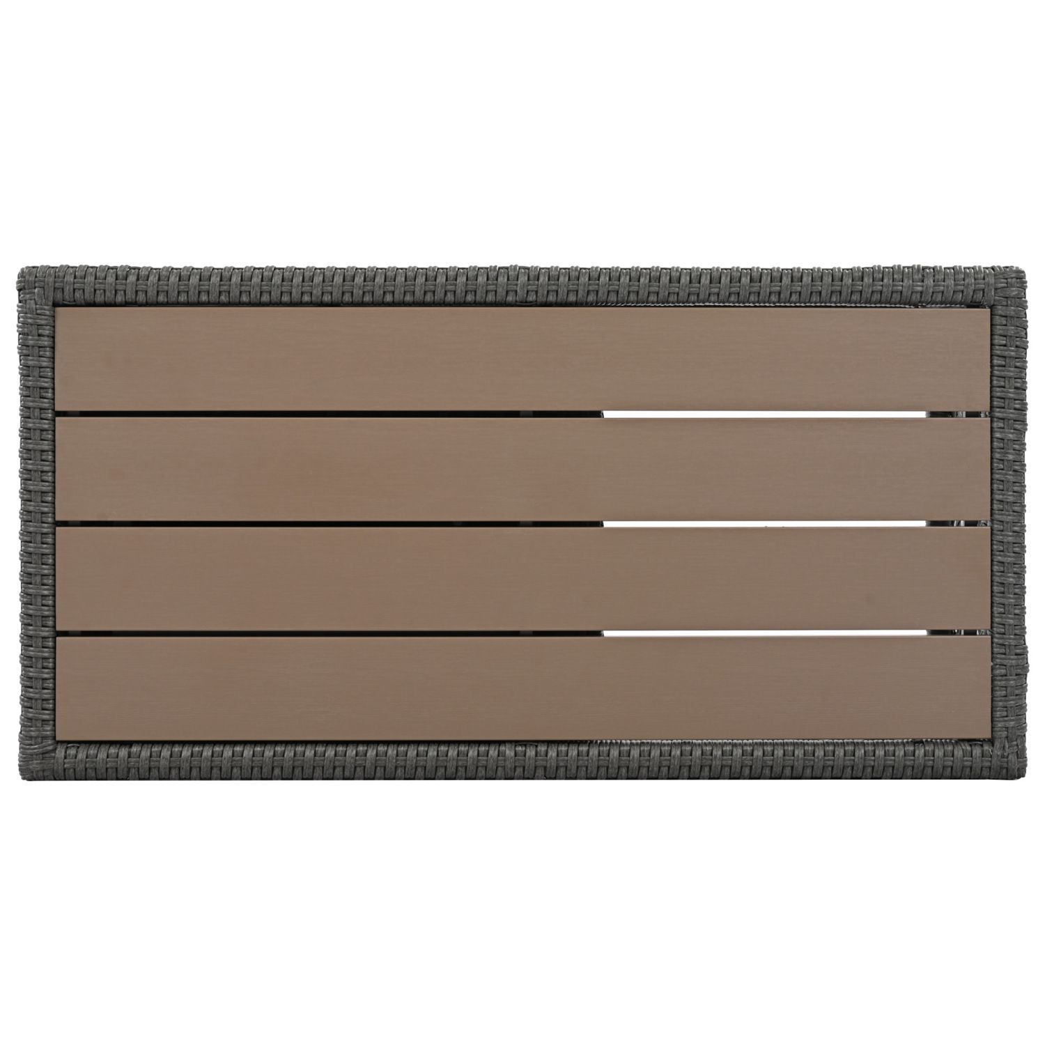 [Extendable Coffee Table with Ice Bucket] Our outdoor furniture sets feature a poly-wood coffee table equipped with a foldable ice bucket. This coffee table offers additional inner space to accommodate beverages, effectively keeping drinks chilled for several hours when filled with ice. It also serves as an ideal enhancement for outdoor soirées.